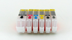 Experienced refillers know that the best cartridges to use are Canon OEM cartridges. These provide the highest quality construction that aftermarket carts fail to match. With real Canon OEM cartridges you get the most reliable inkflow and is generally recommended. For this generation of printer, the tanks are opaque ( Black) and one is unable to see what is happening. Refilling is best done by modifying the OEM tanks and weighing and predispensing an estimated amount of ink prior to refilling.