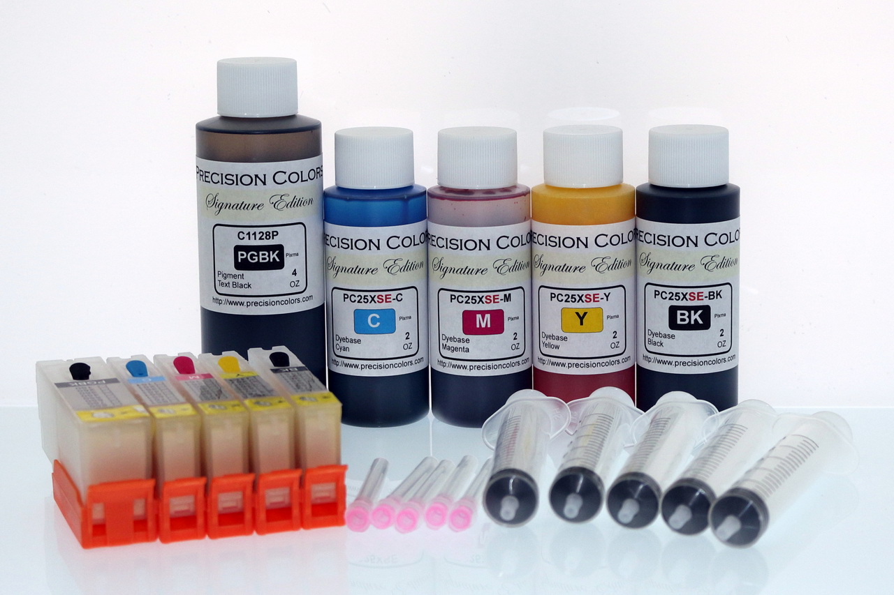The kits below are for refilling your Canon OEM Setup, Standard, and XL tanks. Drilling 7/64" holes for refill plugs is necessary