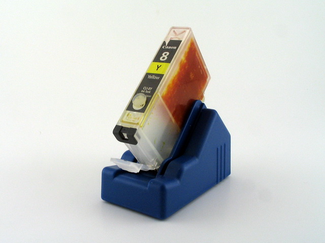 The chip on the ink cartridge will show empty even after the tank has been refilled. To restore the chip setting to full it must be reset with an electronic chip resetter.