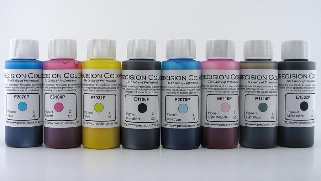 All color inks used in this printer are pigment inks. At this time no dye equivalents are carried.