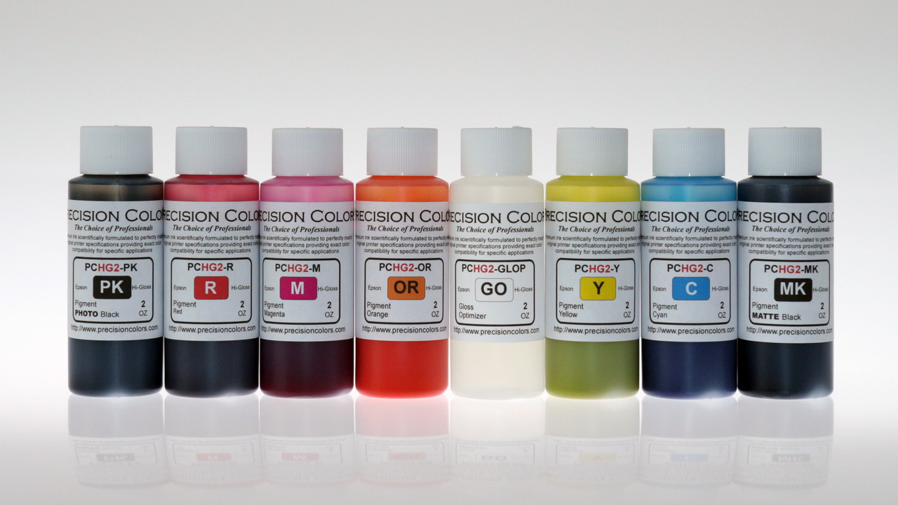 In late 2016, we introduced a second generation set of pigment inks the PCHG2 featuring an odd colored yellow ink just like the OEM Epson yellow. These new pigment inks dramatically improve the image quality, gloss level and clog performance over the previous Image Specialists inkset.